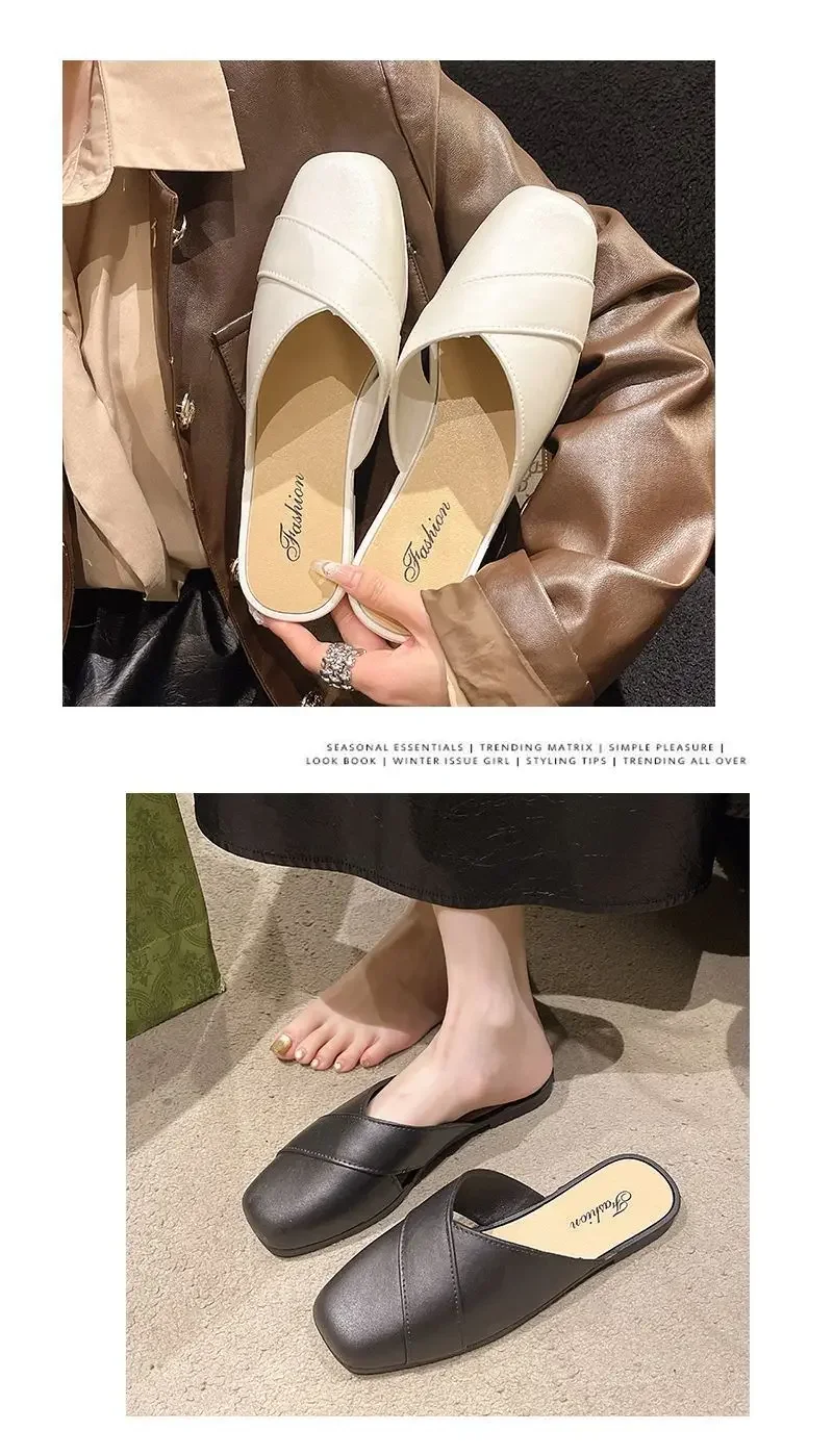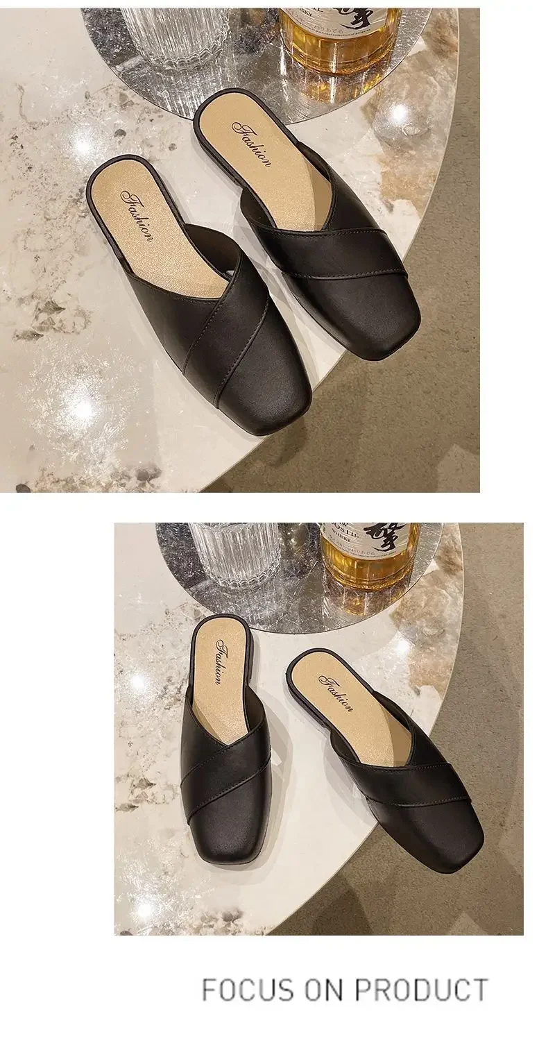 أحذية عصرية جديدة مسطحة القاع سهلة الارتداء مقاومة للماء لجميع الأحوال الجوية ومقاومة للاهتراء على الطراز الكوري صنادل برأس مربع للنساء