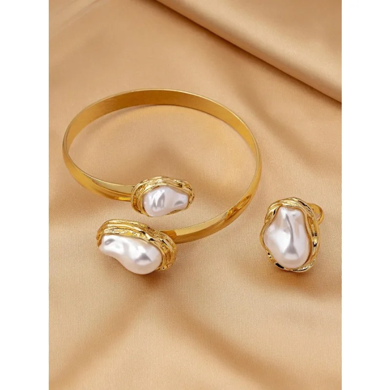 بسيطة تقليد اللؤلؤ الدائري أنيقة مطوي افتتاح قابل للتعديل سوار مجموعة للنساء الفتيات عطلة حزب الأزياء والمجوهرات BS034