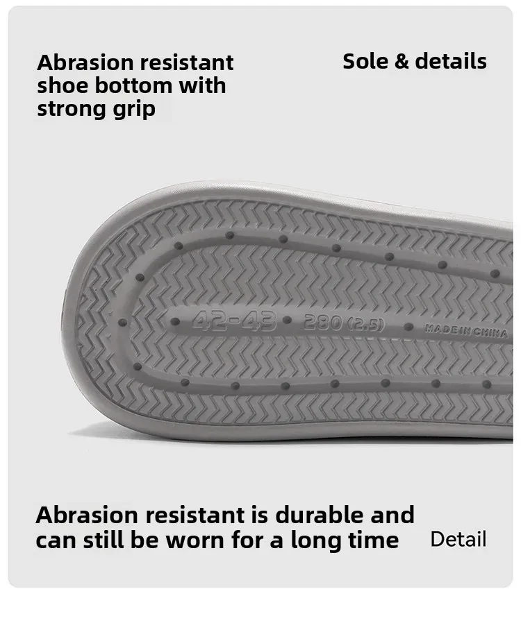 • تصميم مانع للانزلاق:تتميز هذه الشبشب بنعل EVA غير قابل للانزلاق، مما يضمن السلامة والثبات على الأسطح المختلفة، مما يمنع الانزلاق والسقوط.