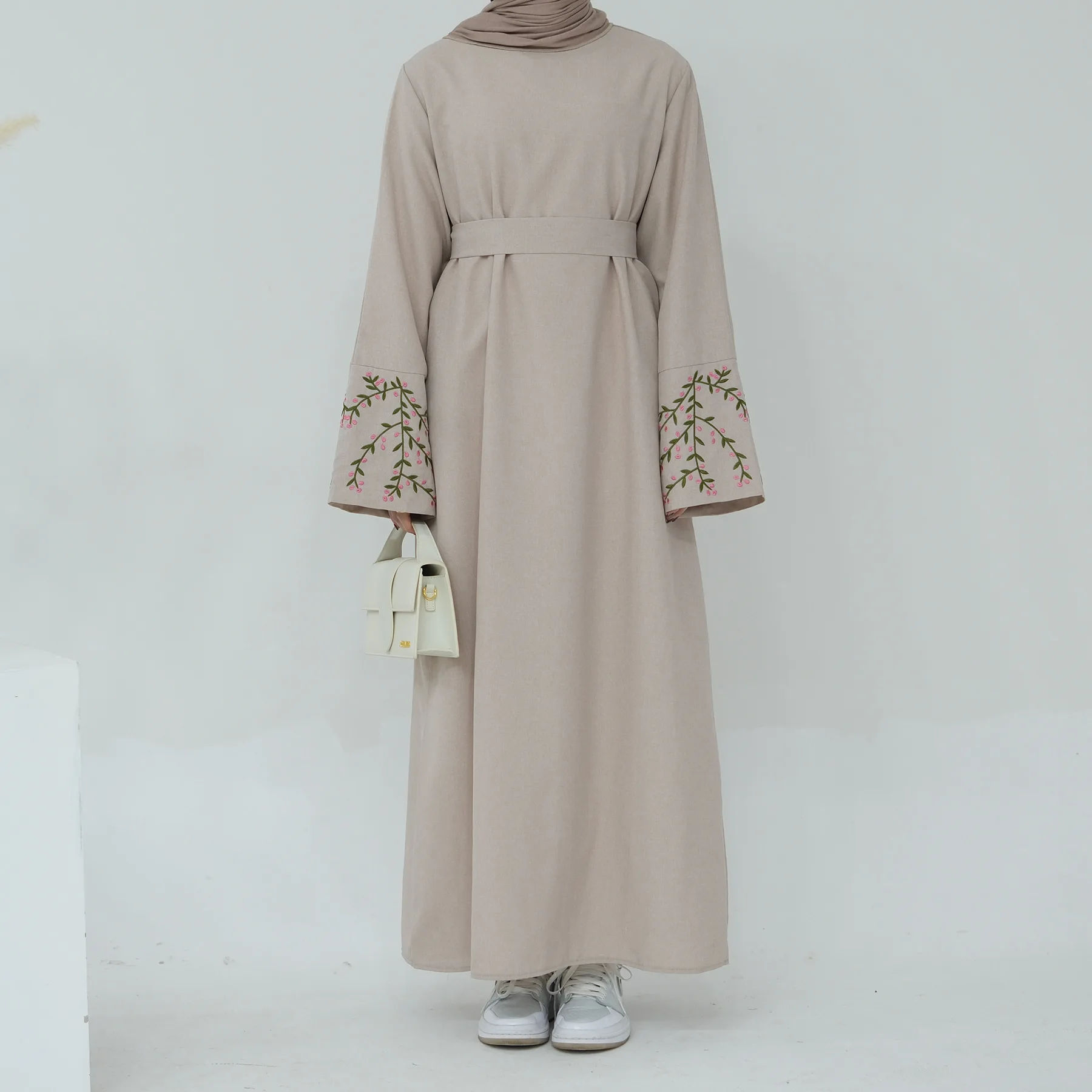 عباية كتان قطنية ومطرز للنساء المسلمات عبايات غير رسمية مغلقة دبي فستان حجاب تركي رمضان ملابس إسلامية قفطان