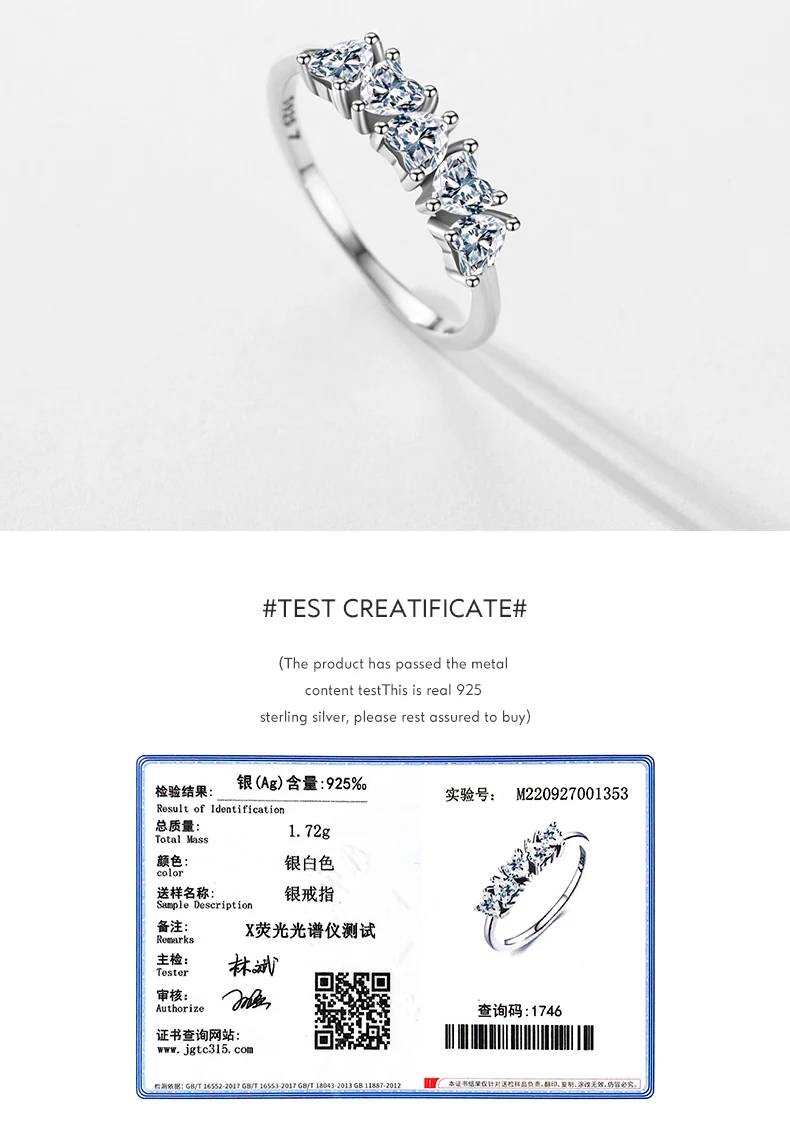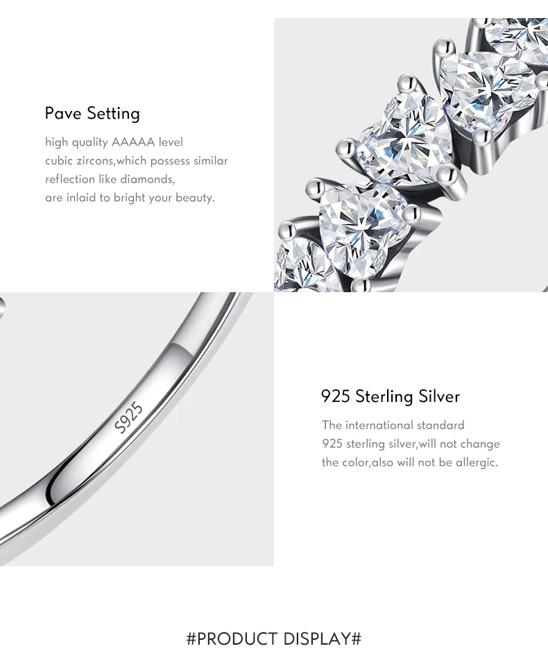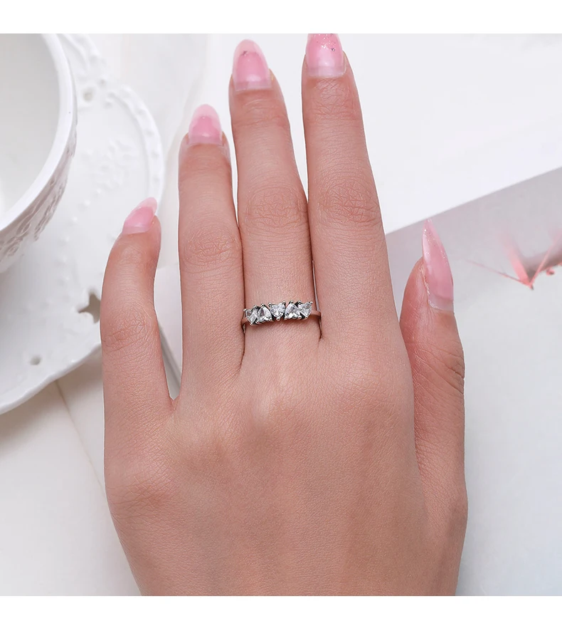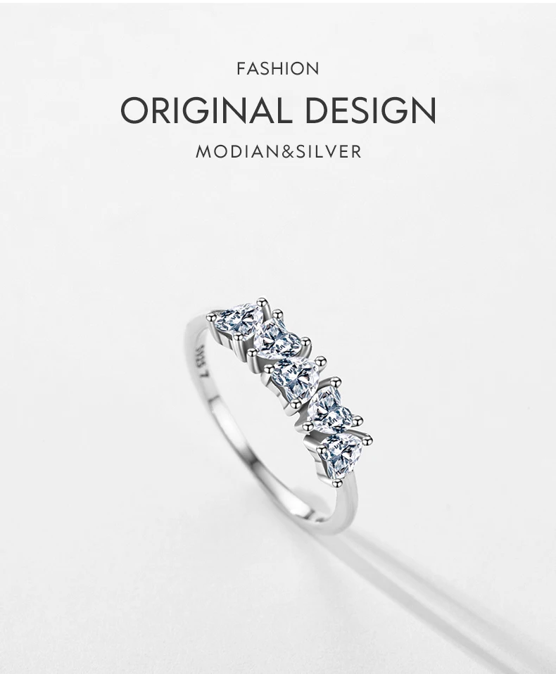 موديان جديد وصول 925 فضة تكويم القلب خواتم الاصبع للنساء مشرقة واضح تشيكوسلوفاكيا الزفاف العصابات الخطوبة مجوهرات