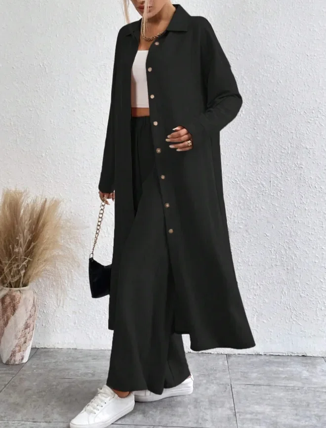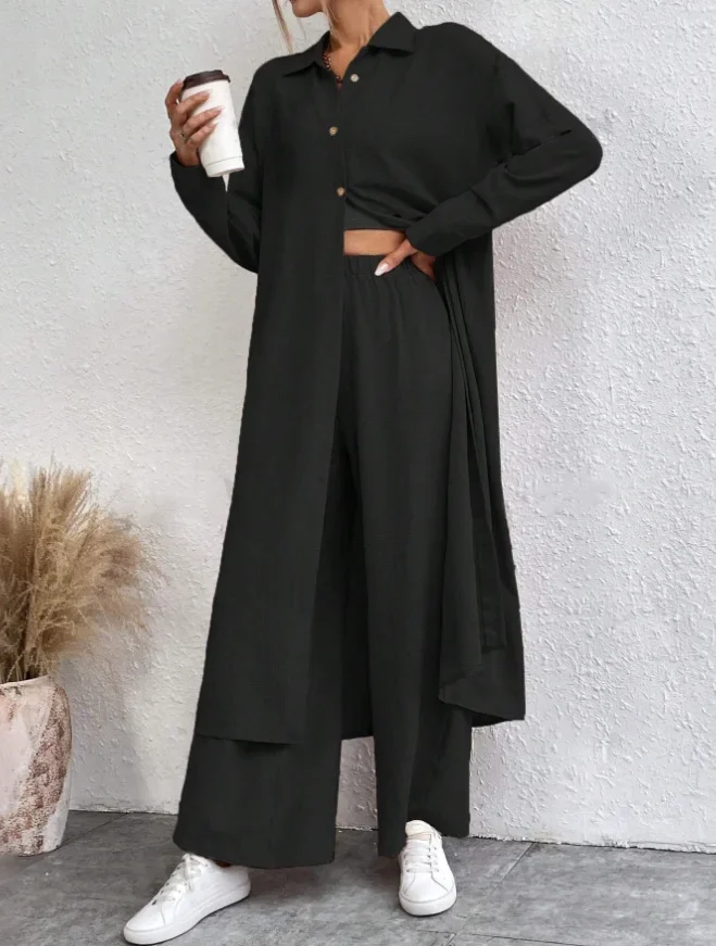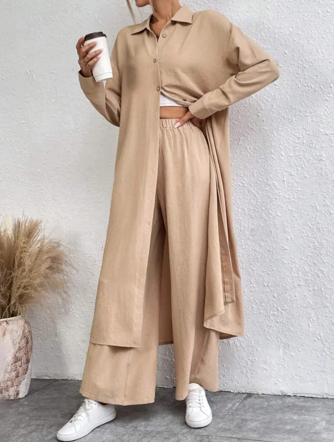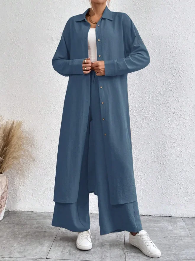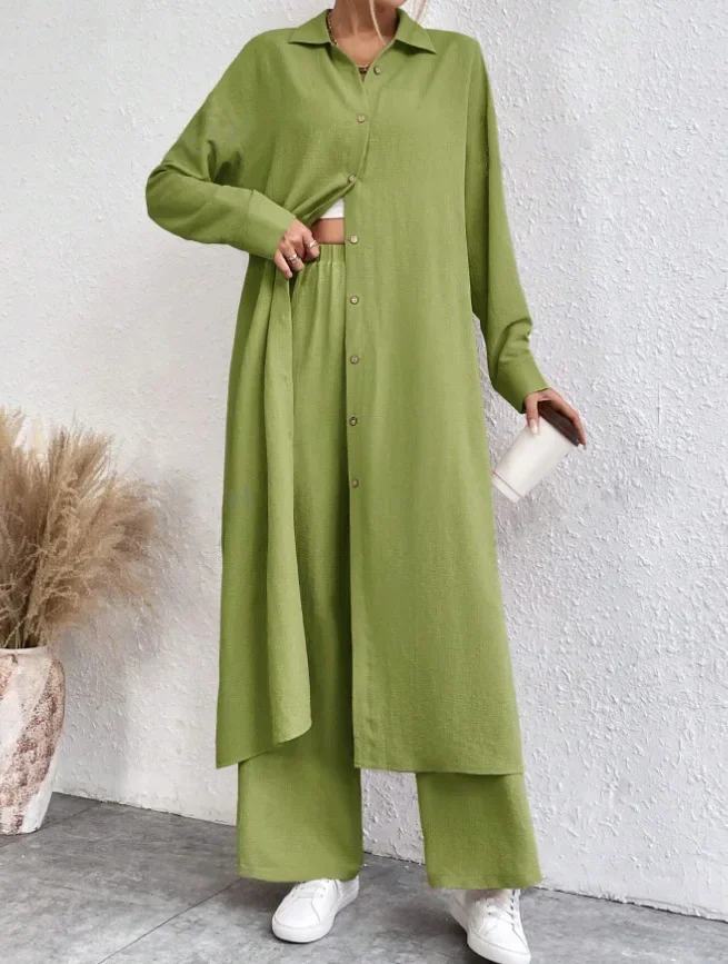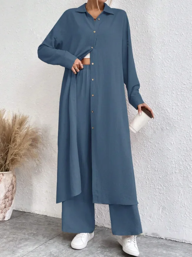 • Two-piece Set : The set includes a long shirt and wide-leg pants, offering versatility and comfort for various occasions.