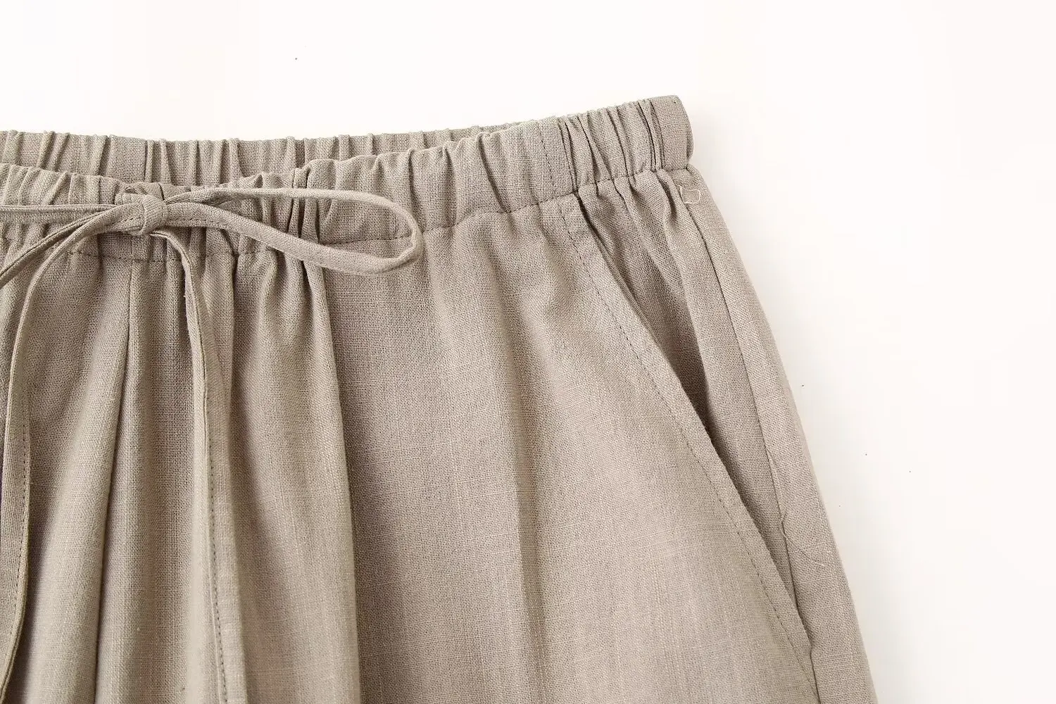 TRAFZA أزياء المرأة السراويل دعوى الصلبة الكاكي الرباط كم طويل Cardgian بلوزة + مرونة الخصر بنطال ذو قصة أرجل واسعة الشارع الشهير